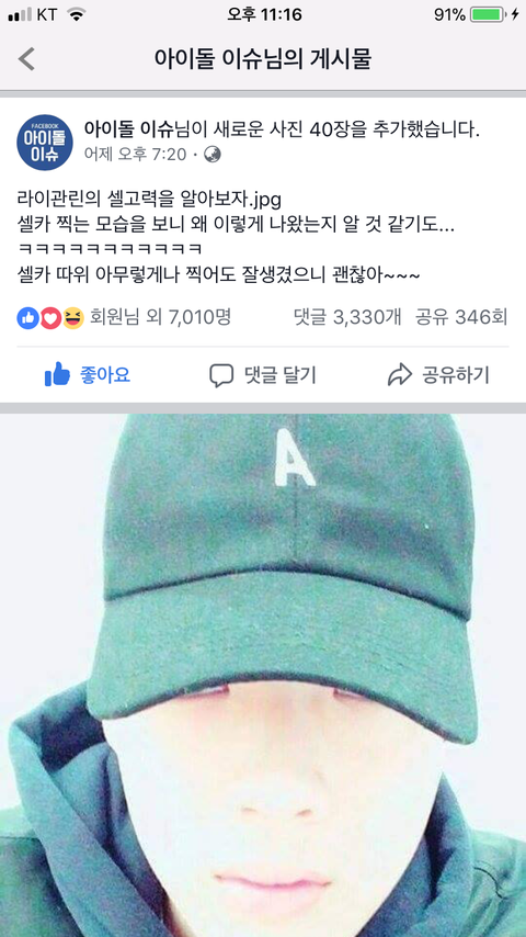 관린이 셀고라고 페북에 게시된글 봤니 ㅋㅋㅋㅋ