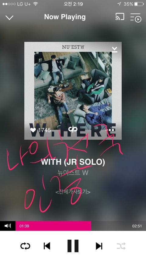 노래가 다 좋은데 웨얼유앳 하이라이트 부분 너무 좋아 나 스웩쩌는척 나도 모르게 게속 춤추고 있어 ㅋㅋㅋㅋㅋ 그리고 난 아론이 이번에 진짜 대박인거같아. 타이틀하고 단체곡에서 아론파트가 젤 귀에 박히더라고 음색도 그렇고,