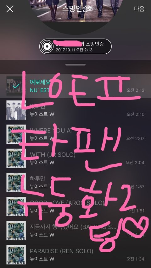 아까 스밍목록 알려달라고했던 쓰니인데 1위 유지 축하겸 스밍인증 들고왔어..ㅎㅎㅎ!!!