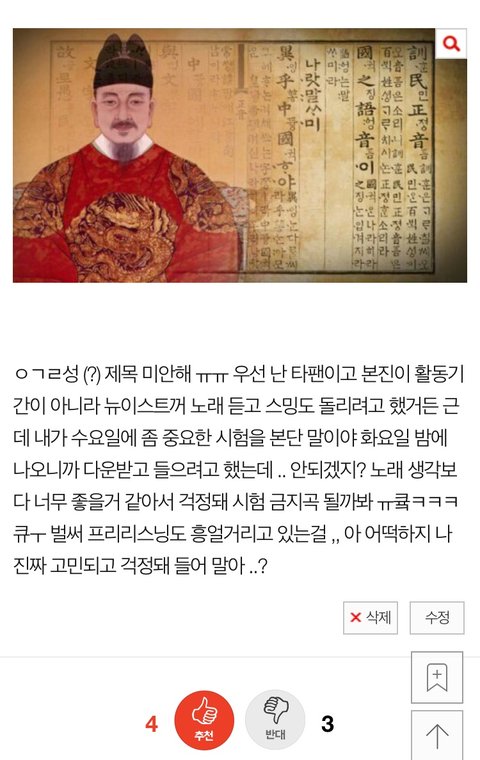 왜 다시 왔냐면 ,,, 내일이 그 중요한 시험날임 ,, 아 정확히 말하면 오늘이구나 ,, 튼 니들이 한번만 듣고 듣지말라해서 진짜 딱 한번만 듣고 공부하려고 했는데 티저 뮤비 다시 재탕하고 가위앱 스밍 돌리고 있다 나 진짜 고막 녹고 내 성적도 녹아내리는 기분임 럽들 책임져 ㅠㅠㅠㅜㅜㅜㅜ