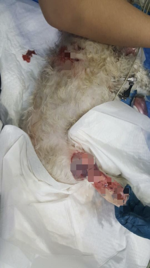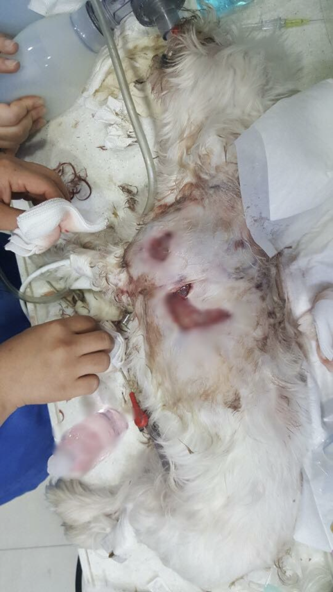 그런데 그 대형견은 달려 오자마자 순식간에 보리 목덜미를 물었고, 놀란 제가 뛰어가 아이를 빼려고 난리를 쳤지만, 오히려 더 세게 물고 털기 시작했습니다. 전 그 순간 제정신이 아니었고 어떻게든 우리 아이를 빼내려고 애썼습니다. 그때 풀려있던 또 다른 한마리가 달려오더니 우리 보리의 뒷다리를 함께 물었고, 두마리가 보리를 물어뜯기 시작했습니다. 어찌해서 보리를 떼어놨을때는 이미 엄청난 피를 흘리며 실신해 버린 상황이었습니다. 전 보리를 안고 정신없이 병원으로 뛰었습니다. 이게 우리 보리의 마지막이었습니다.보리는 온몸에 구멍이 나고 뒷다리가죽이 다 벗겨지고 발도 떨어져 나갔습니다 .너무나 처참해서 이글을 쓰면서도 손이 덜덜 떨립니다