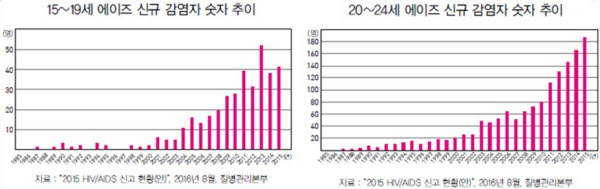 실제, 보건복지부가 만든 '제4차 국민건강증진종합계획'에 따르면 국내 청소년과 청년의 에이즈 감염인이 급격히 증가하고 있다. 15세에서 19세 남성은 2000년 2명에서 2015년 41명으로 20배 증가하였고, 20~24세 남성은 2000년 15명에서 2015년에 185명으로 12배 증가하였다.