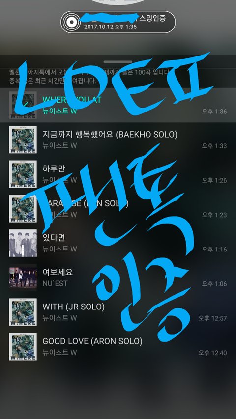 뉴이스트 눌렀는데, 하단에 > 버튼도 비활성화 되어있고,