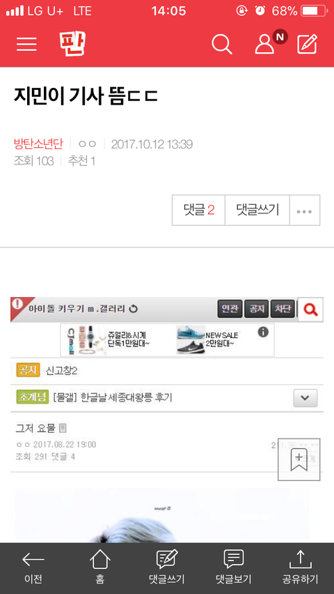 밑에 지민이기사뜸ㄷㄷ 여기서봐