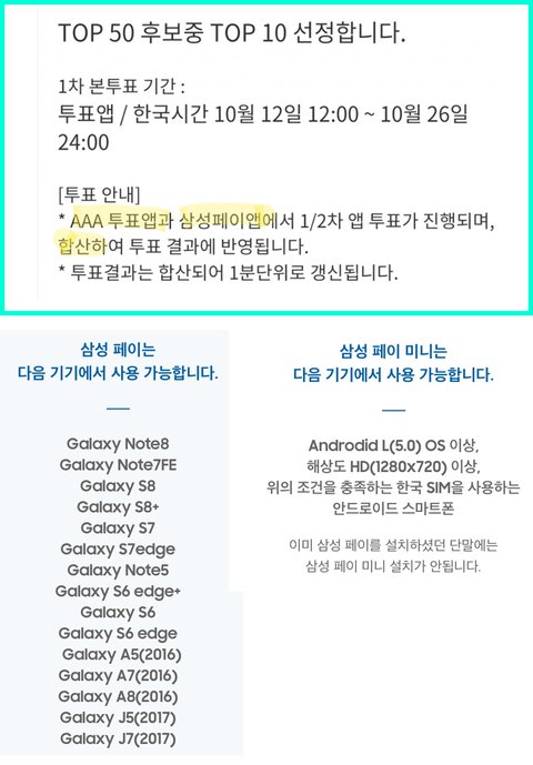오늘부터 시작된 AAA투표는 사전투표에서 선정된 TOP50 후보중 다시 TOP10을 선정하는 투표야