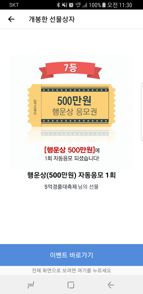 이벤트 딱 열어봤는데 500만원 이라고 써있어서 순간오 ㅅㅂ 1등인가나에게도 이런 행운이!!! 하면서 심장이 두근두근했는데응모권이라니!!!!!!!!!!!!!!!!!!농락당함… 행운상응모권을 크게 써 놓던가...