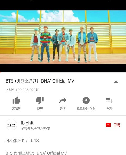 방탄 DNA 뮤비 1억 넘음ㅋㅋㅋ