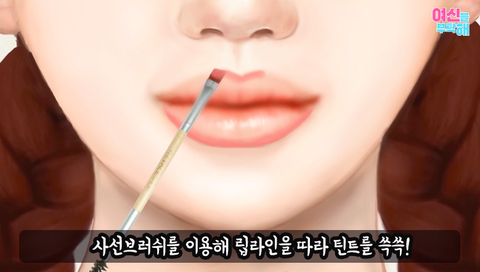 아이브로우 사선 브러쉬를 이용해 립 라인을 먼저 따주면 좋음
