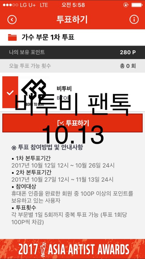 어플 깔아서 해야됑 적어도 top10안엔 들어서 세 번째 투표 후보는 하자 우리!!