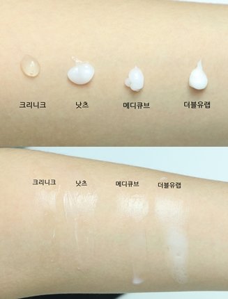 이건 맨들맨들한 제형이었어! 근데 미묘하게 조금 더 부드럽게 발려 이건 부들부들 느낌이랄까? 향은 가장 화장품 냄새가 났어! 뭐라하지 약간 썬크림 냄새(?) 같은게 나는 느낌? 이것은 병풀추출물 1% 들었고 또한 의약외품이더라구!! (크리니크)