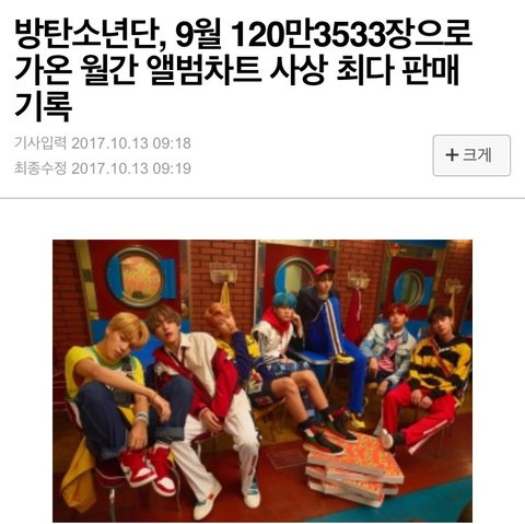 헐방탄 앨범 120만장 돌파함ㄷㄷ