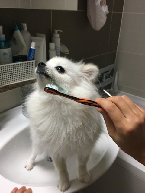 양치하기 싫다고 피하는거... 미끄러질까봐 바로 잡았어요
