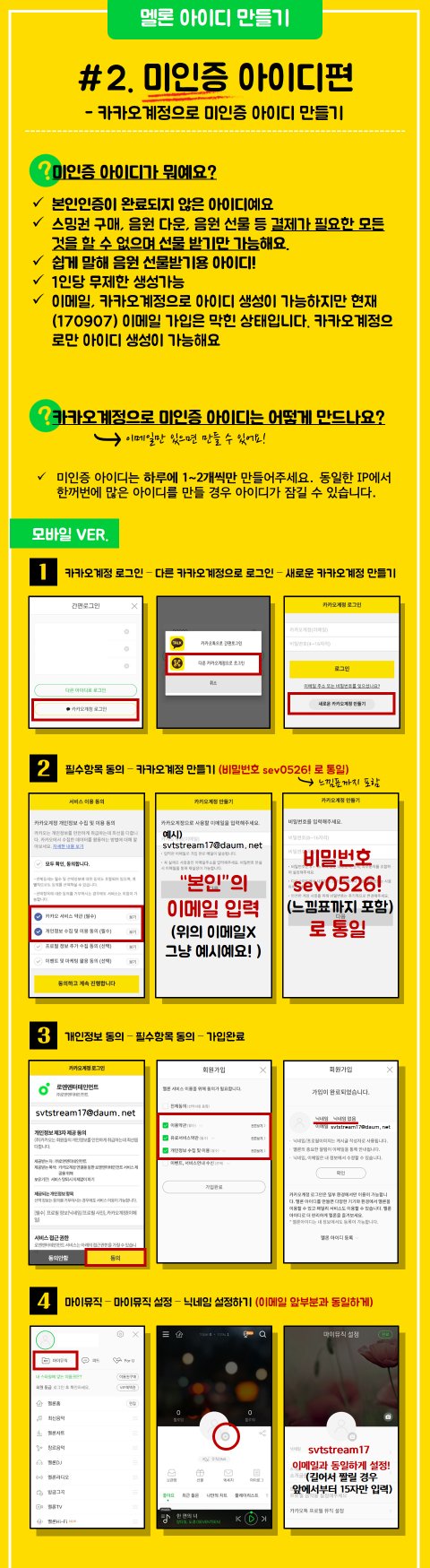 멜론 카카오미인증계정 생성 가이드