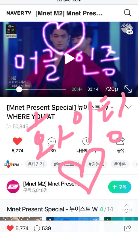 오늘 아, 어제 뮤직은행 영상도~ 오늘은 인기ㄱㅇ 인가??? 기대할게~