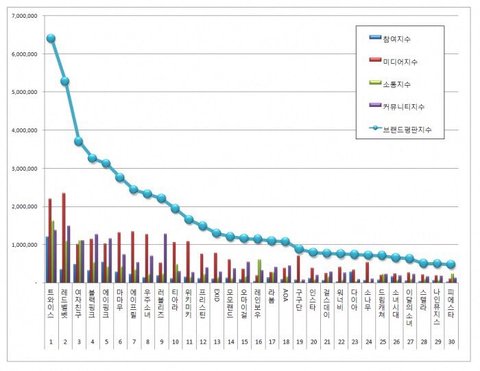 한국기업평판연구소는 걸그룹 브랜드평판 빅데이터 분석을 위해 2017년 9월 12일부터 2017년 10월 13일까지 측정한 브랜드 빅데이터 56,809,055개를 분석하여 걸그룹 브랜드에 대한 참여지수, 미디어지수, 소통지수, 커뮤니티지수로 브랜드평판지수를 측정하였다. 지난 9월 걸그룹 브랜드 빅데이터 70,150,775개와 비교하면 19.02% 줄어들었다.