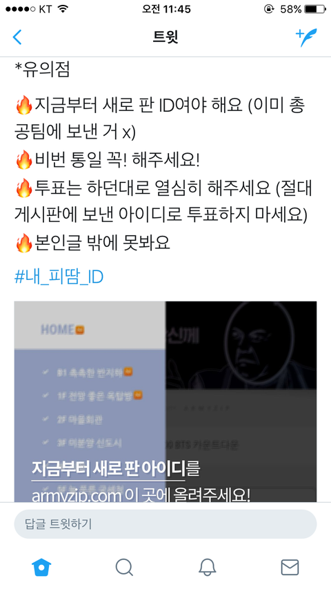#내_피땀_ID 해시로 같이 올려서 모르는 아미들 알도록 해야해 투표 중간중간 알티라도 해줘!