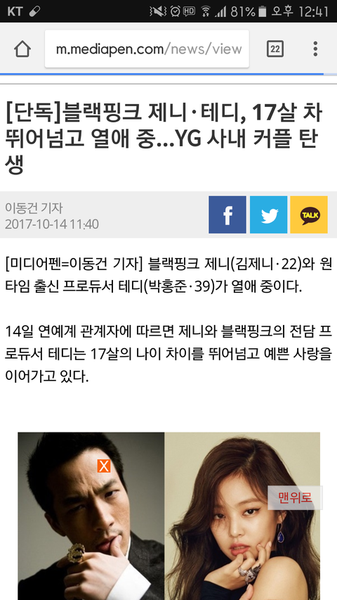 yg에서 블랙핑크 제니하고 테디 연애한대..ㄷㄷ제니 능력좋네 ..