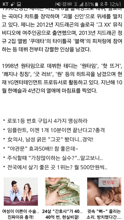 좀전 상단기사에 누가 사진 올림ㅋㅋ 둘이 붙어서 사진찍은거 바로 삭제됨ㅋㅋㅋ 알려줄게. 최강 법무부 상대로 기자가 바보도 아니고 근거없이 기사를 왜씀ㅋ 사진증거 잡고 기사터뜨렷고, 후에 사진 유출여부는 YG와 거래해서 돈받앗고 지금 기사 내렸지?ㅋㅋ