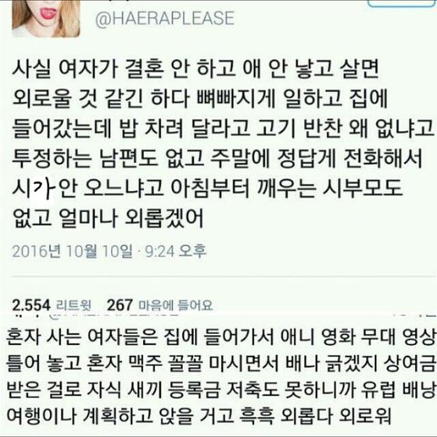 웃긴건 억지로 하루하루 자신이 행복하다고 속여가며 사는 한국남자랑 결혼한 노예들이 많다는거. 근데 결혼전으로 돌아가고싶다고 울먄서말함