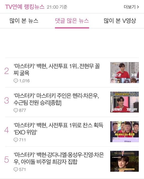 네이버 TV연예 랭킹뉴스 9시 기준'ㅅ'