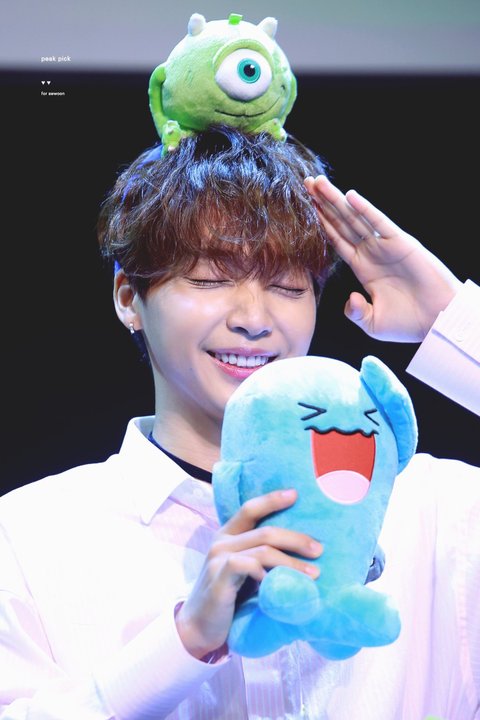 오버액션토끼 받고 포즈까지 따라해주는데 모든 인형을 다 따라 할 수 있는 정세운의 전매특허 인형따라하기