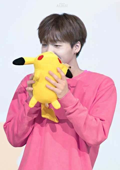 피카츄 받고 피카츄 입술이랑 눈 모양 따라하는데 그냥 정세운 자체가 애교인데 피카츄까지 따라하니까 더 애교다