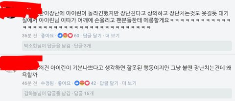 ㅋㅋㅋㅋㅋㅋㅋ조카 뭐하는 애인지 궁금하다 ㅋㅋㅋㅋㅋ 아이린이랑 누가봐도 안친한거 다 ㅇ보이는데도 계속 말걸면서 뭐라 하고 ㅋㅋㅋㅋ거기까진 뭐 그렇다쳐도 팔 올리는건 솔직히 아니지 않냐? 기본적인 상식아니냐. 안그래도 내성적이고 낯가림 삼한애한테 ㅋㅋㅋ친하지도 않으면서 뜬금없이 아이린 어깨에 팔 거치고 레드벨벳 팬한테 메롱하는거 ㅋㅋㅋㅋㅋ 그리고 못먹는 감인가 그거 부르면서 성적인 가사에서 아이린 삿대질 하면서 부르는거 ㄹㅇ 어디서 배워온거임? 남한테 삿대질 하는게 잘하는거라고 배웠니? ㄹㅇ피드백 올리고 공식적으로 사과해라 ㅋㅋㅋㅋ