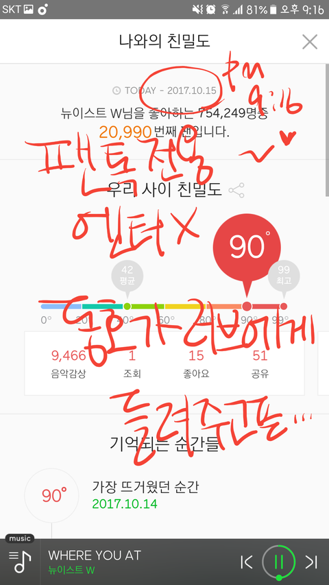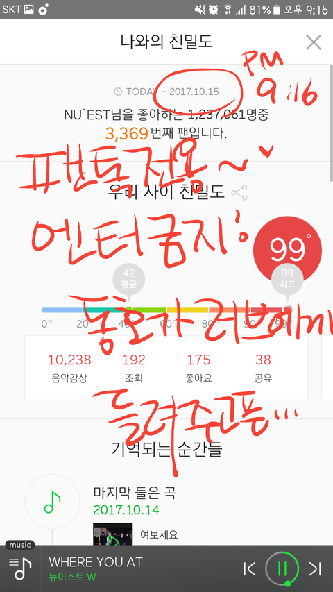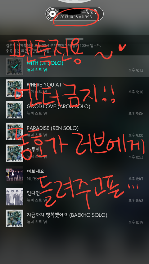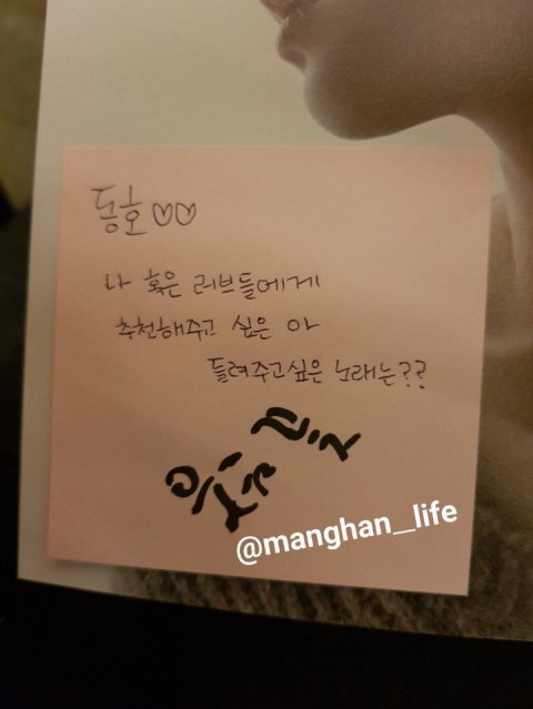 오늘 팬싸 포스트잇에 때 동호가 러브에게 들려주고픈 노래를 써줬는데..