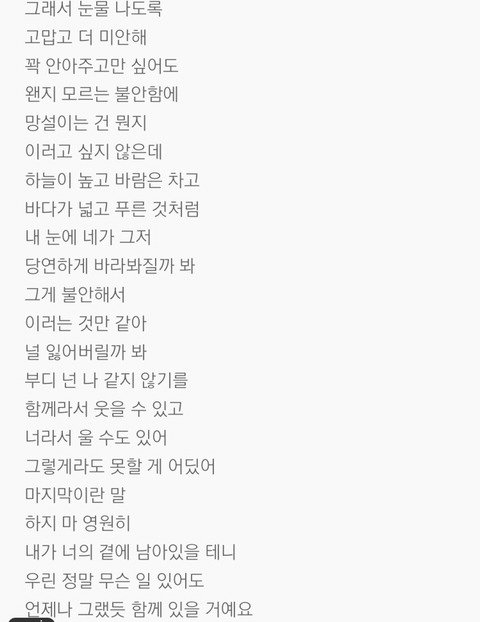 가사가 맘을 아리게 해서.. 동호 마음 알아주면 좋겠어서 이렇게 글 올려