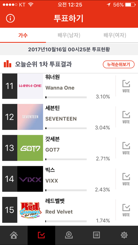 12둥이여서 빨리하고오자고 하려는걸 11등이라고 해보렷어 ㅠㅠ 뮤비 보고왓으니깐 이제투표도 열심히하자 !!