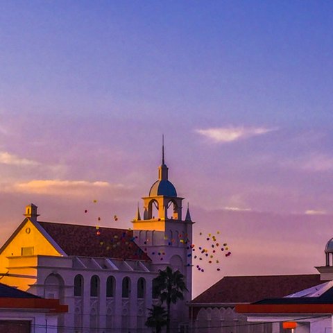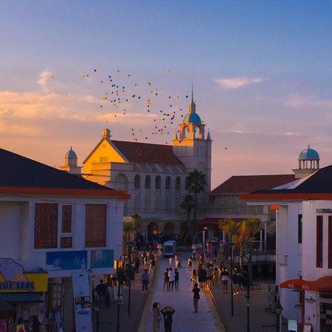이사진은 모모치해변 한가운데에있는 결혼식장이얌.마침 타이밍좋게 결혼식하고있었어.멀리서 구경했는데 너무 이뻤어 진짜.저기 풍선들은 하객들이 올려보낸 풍선들이야!