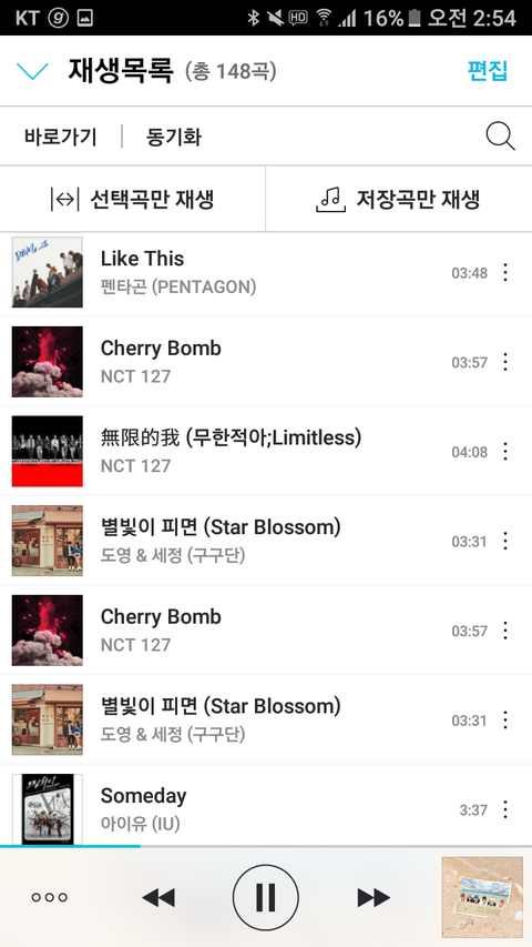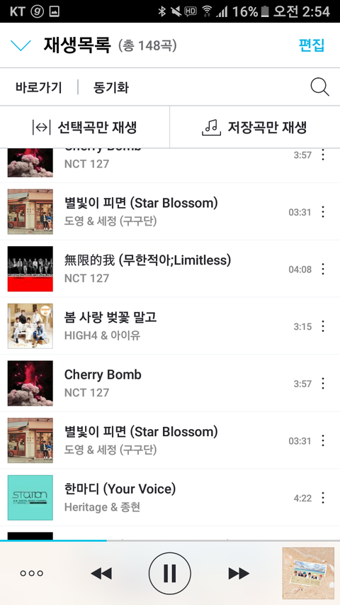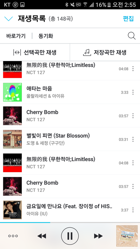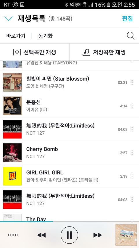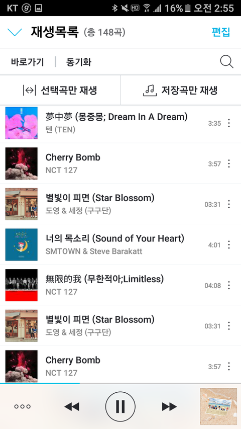 나같은경우는 타이틀곡만 중간중간에 끼워서 낳고 스엠가수들 애들 스테이션포함하고 이렇게 해서 듣는데 이것도 괜찮지않니?? 지금 타가수 스밍에 영향 안가는 곡으로 일부러 골라서 듣는 경우야!