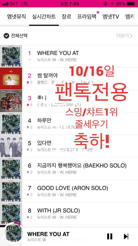 주말내내 외부 외박해서 노래못돌려서 오늘 돌리고 들을랬더니 순위 어머머 축하해 !!!!!