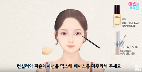 이전 단계에 사용했던 컨실러와 사용할 파운데이션을 믹싱해줘