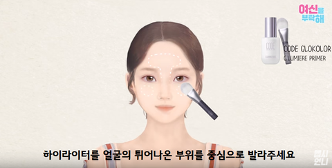 마지막으로 하이라이터 제품을 얼굴의 튀어나온 부위를 중심으로 발라줘