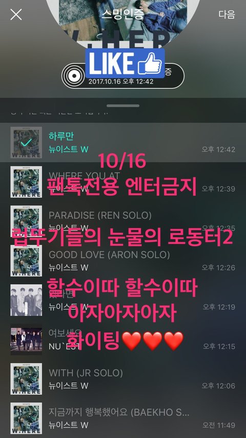각성 20만장까지 :약 -6000. 6000명이 한장씩만 더 사면 우리 20만장 넘는 아이돌로 뉴이스트 빛내줄 수 있어. 여력되는 사람들은 2장이상 사주면 좋고. 앞으로 남은 근 2주간의 활동. 그 이후엔 떡밥도 떨어지고 노동할 거리도 적어질텐데 그 때 후회하지 말고 지금 쏟아놓자. ❤️ 지나간 초동은 다시 돌아오지 않는다!!!!! 나 하나 때문에 199,999에서 멈추는 거 보고싶지 않으면 당장 구매!!!!!!!!❤️ (베댓가게 추천눌러줘!!!)