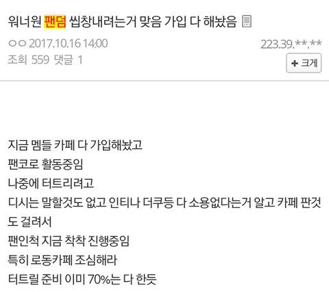 1. 워너원 멤버중 한팬덤 악개 이미지 씌워서 욕먹이려고 (혹은 둘셋) 온갖 자료 짜집기하고 옾챗 주작할예정