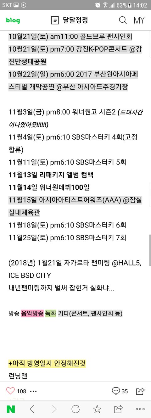 지금까지 나온 스케줄