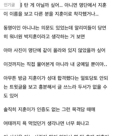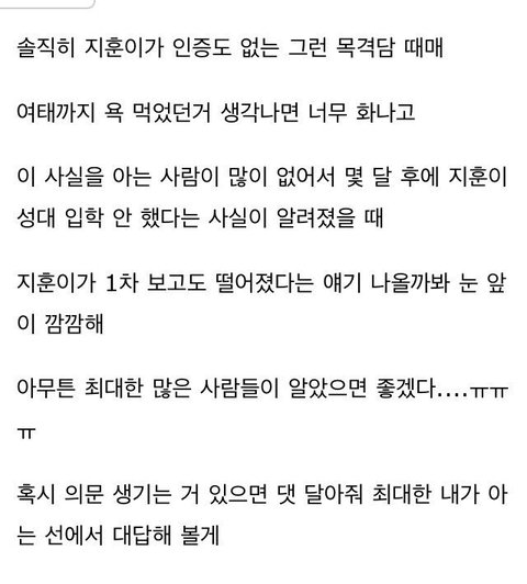 애초 욕먹을 일도 아니었음 구씹이든 아니든 연기 경력 있는 애가 다른 과 지원한 것도 아니고 자격되는 연기관련과 간다는데 성적 운운한 놈들도 웃기고 있지도 않은 루머 만들면서 욕하던 악플러들도 짜증남 모두 고소미 먹어라