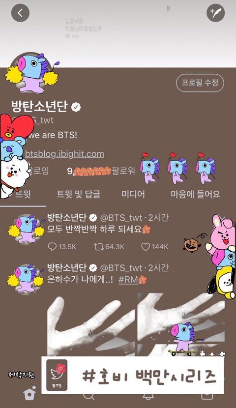 그러고보니 마지막 백만시리즈인거 나도 몰랐는데 백만시리즈 끝이라구 이런 합성 생각해낸 호석이 뇌가 귀여워....