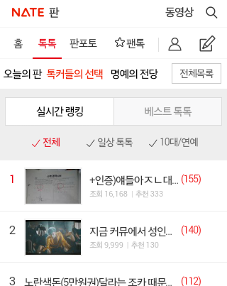 ++)))와 판인생 5년만에 톡선+실시간 1위 처음이야 글 올린겅도 처음인데ㅠㅠㅠㅜ