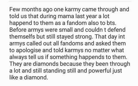 일도 많고 탈도 많아서 많이 후드려 맞았는데 그걸 버티고 쳐맞으면 쳐맞을 수록 다이아몬드처럼 단단해져서 케이 다이아몬드라고 부르는 거래 외랑둥이가 내 질문에 답해줬어 ㅠㅠ 뜬금없겠지만 방탄 아미 지금까지 엄청 고생했다 내 이삐들 ㅠㅠㅠ 지금처럼만 오래 영원하자 ㅠㅠㅠㅠㅠ