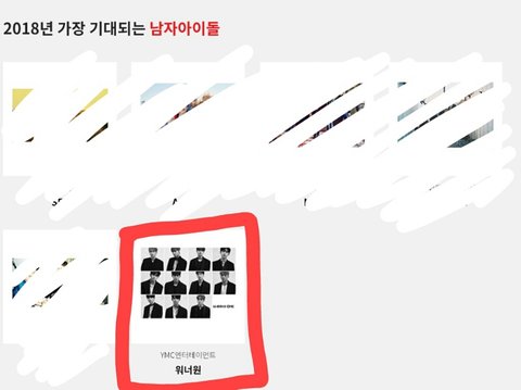 우리원 2018년 - 기대되는 남자아이돌 부문에 후보로 올라왔길래
