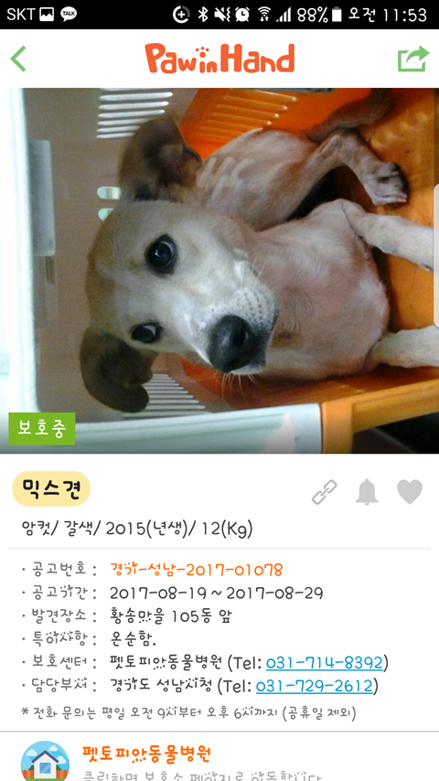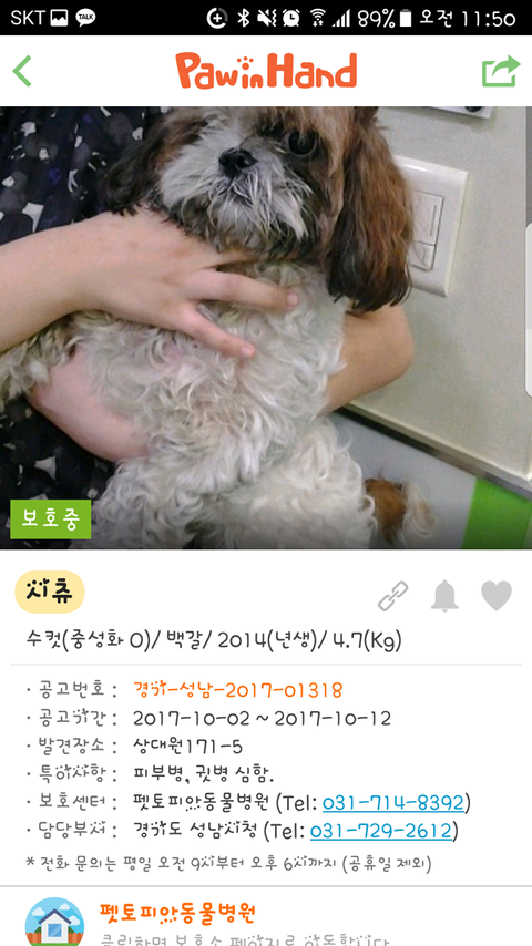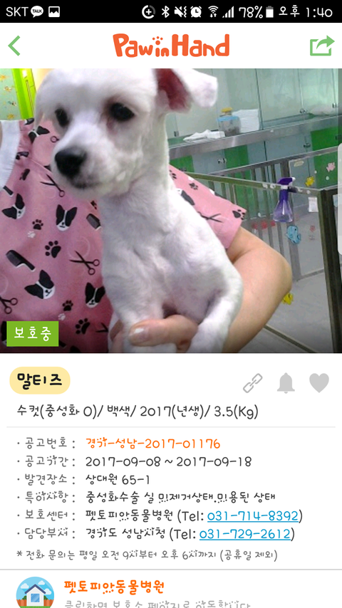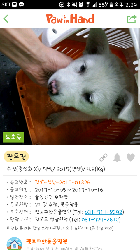 입양조건 직접 데리러 오셔야하며 입양을 원할시 공고번호를 기억해주세요.
