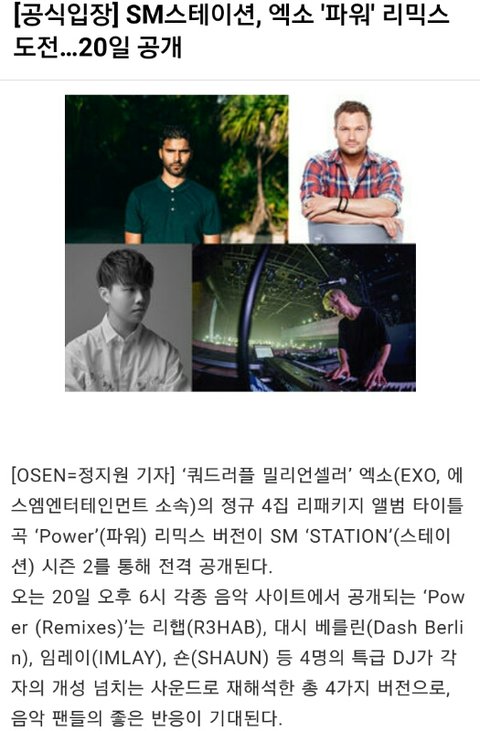 엑소 파워 리믹스된다는데 라인업ㄷㄷ