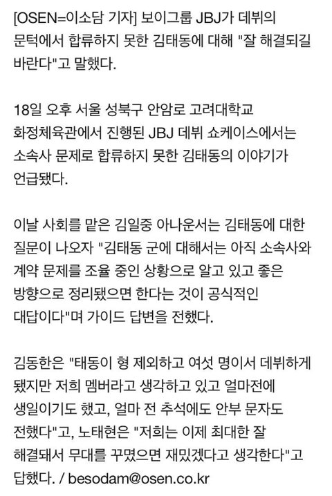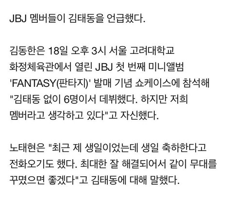태동이 행복했으면 좋겠고 JBJ도 잘되길 바래