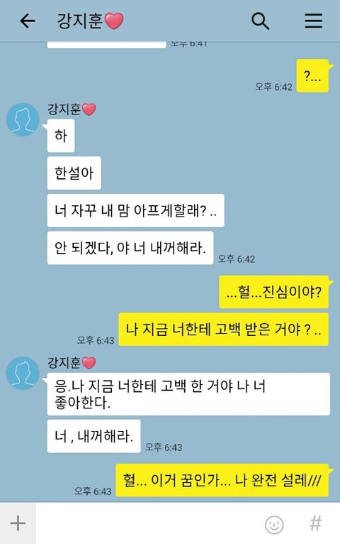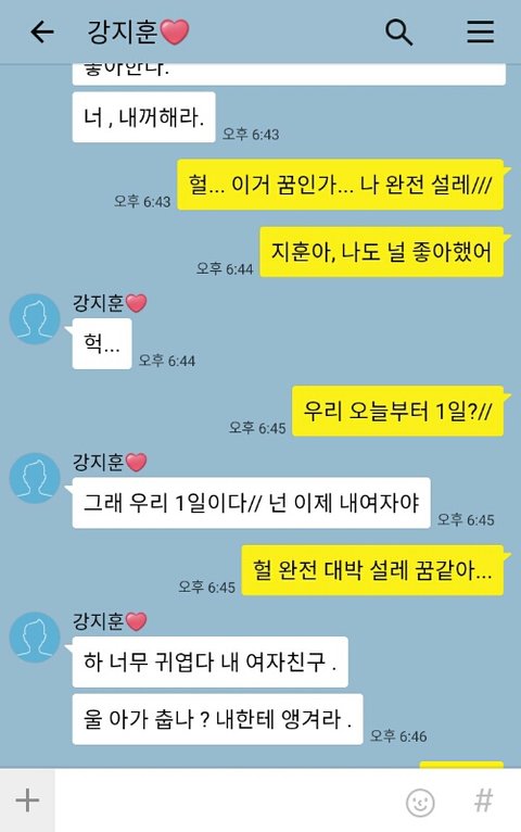 헐 대박 이거 꿈인가? 내 3년 짝남이 날 좋아할 줄이야!!! 하 너무 행복해 꿈만 같아.. 이럴날이 올 줄이야...!! 얘들아 기 받아가!! 우리 응원해줘! 꼭 꼭 롱런할게!!♥♥~