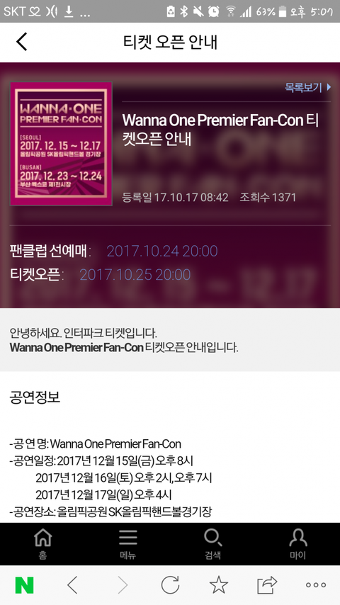 정보)인/터/파/크 팬콘 티켓오픈 안내