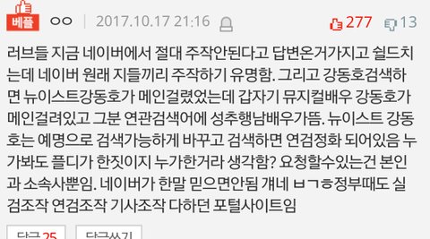 네이버 피셜로 그거 마음대로 못한다 했고 아주 플디 걍 나라건국하셈 정부에서도 함부로 못하는거 아주 쉽게 다 밀어버렸네 솔까 플디가 프로필갖고 네이버 쥐락펴락을 할 수 있는 크기의 소속사면 애초에 연검부터 싹 밀지;;