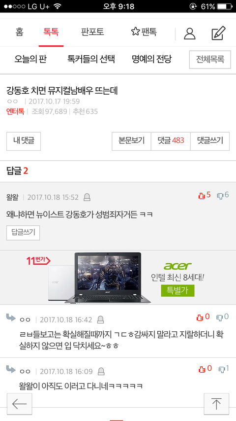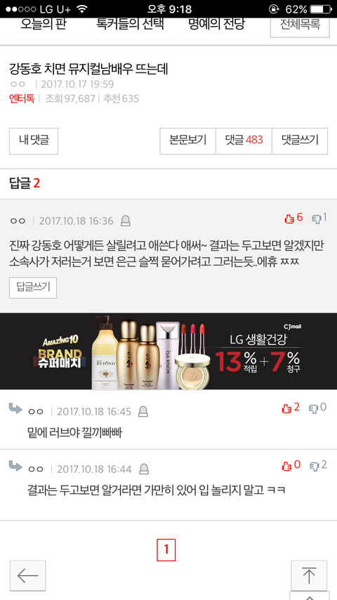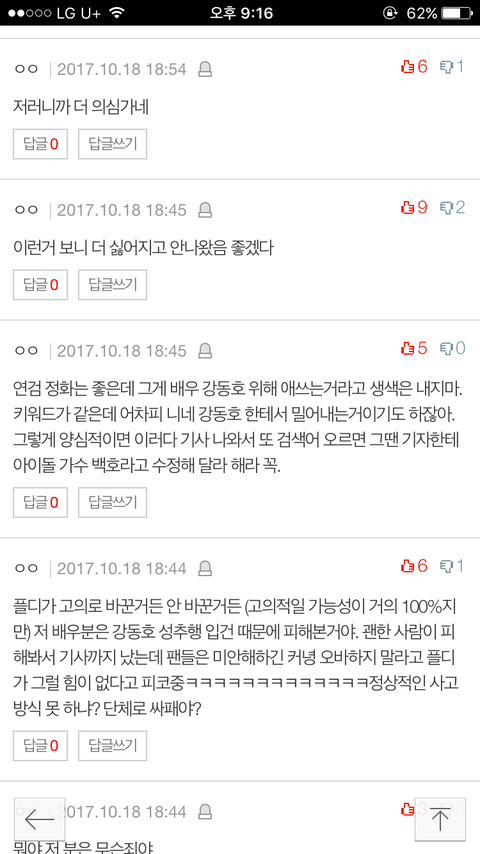 정말 배우 강동호분이 어이없게 기사나고 연관검색어뜨고 그런건 안타까운데.. 아닌걸 그랬다고 하고 해명,피드백은 죽어도 안보는 사람들이 너무 웃기다..